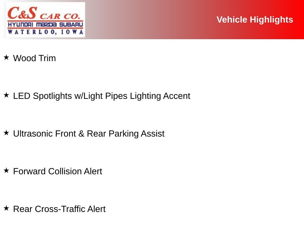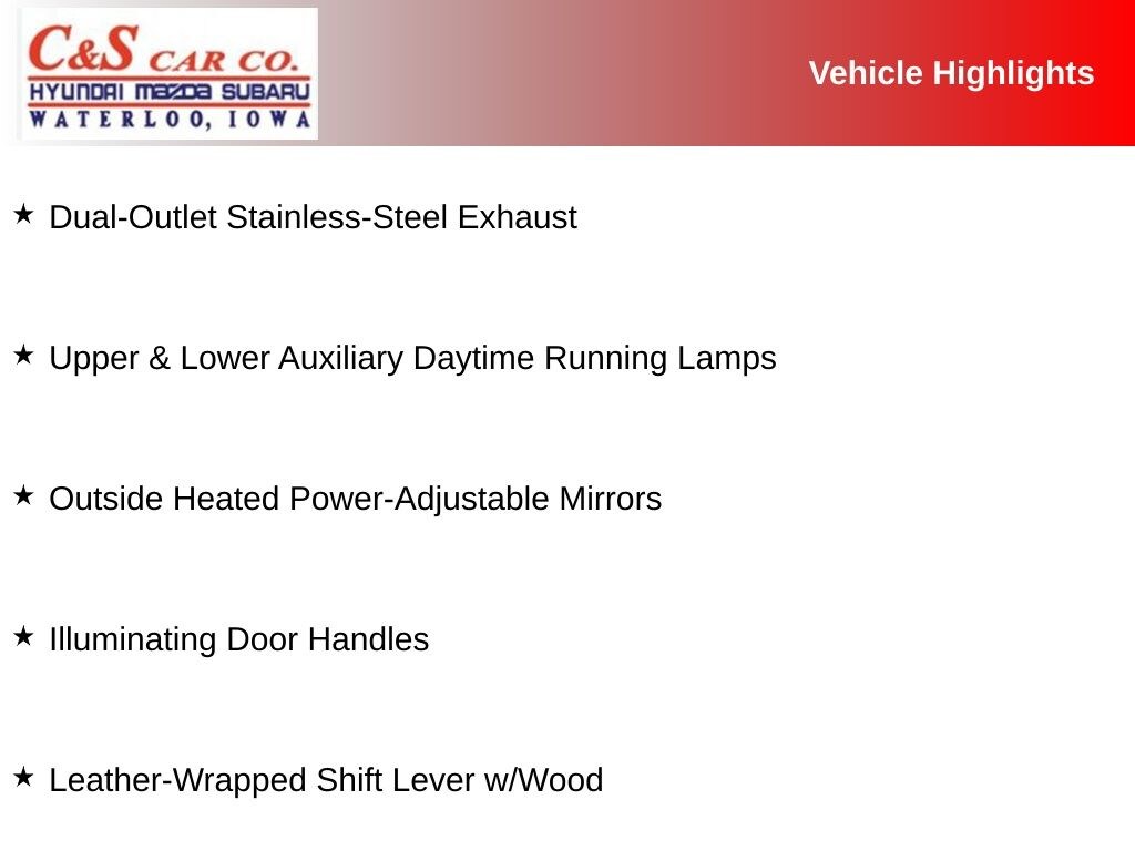Driver Awareness Package, Driver Thigh Seat Adjuster, Dual-Outlet Stainless-Steel Exhaust, Forward Collision Alert, Front Passenger Thigh Seat Adjuster, Heated Driver & Front Passenger Seats, Heated Rear Outboard Seating Positions, Illuminating Door Handles, Lane Departure Warning System, Leather-Wrapped Shift Lever w/Wood, LED Spotlights w/Light Pipes Lighting Accent, Luxury Collection Package 1SB, Memory Package, Outside Heated Power-Adjustable Mirrors, Rainsense Wipers, Rear Cross-Traffic Alert, Rear-View Backup Camera, Side Blind Zone Alert, Trunk Convenience Net, Ultrasonic Front & Rear Parking Assist, Upper & Lower Auxiliary Daytime Running Lamps, Ventilated Driver Seat, Ventilated Passenger Seat, Wood Trim.