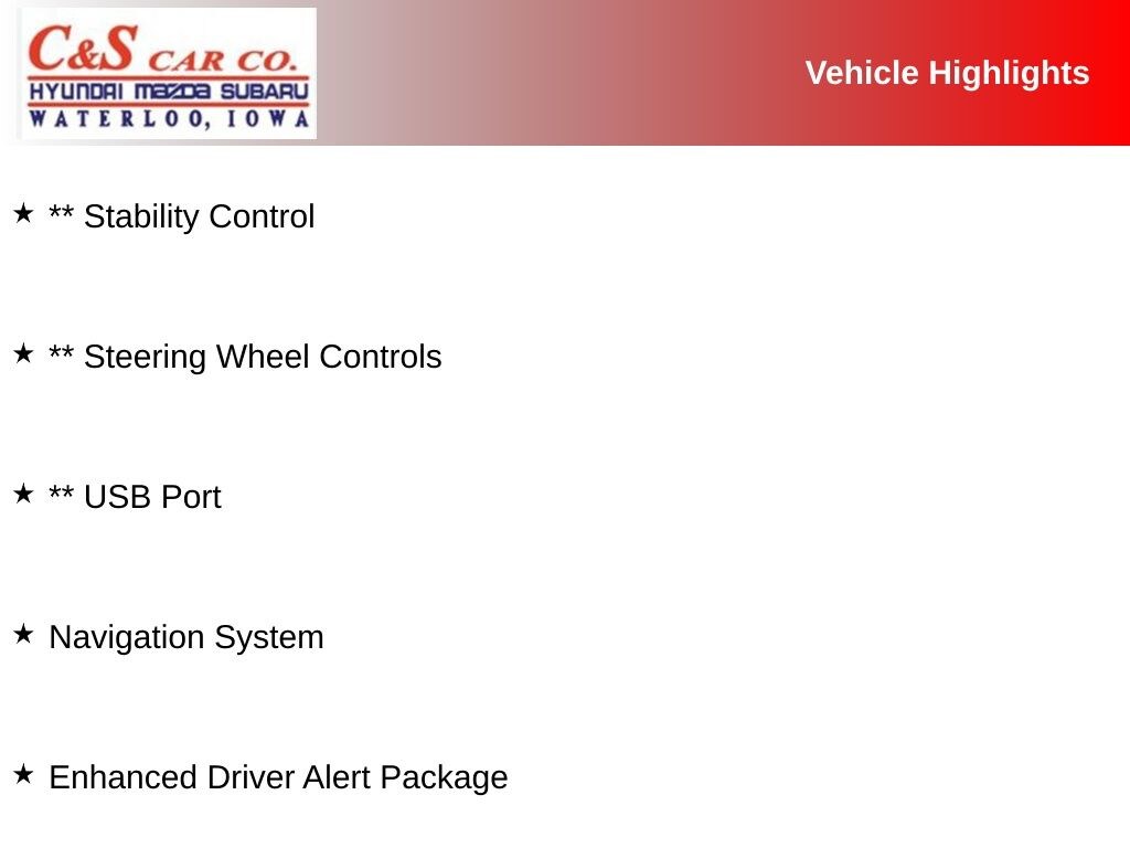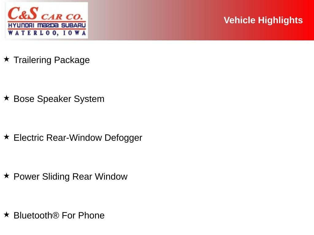 ** Backup Camera, ** Bluetooth, Hands Free, ** Cruise Control, ** Keyless Entry, ** Premium Sound System / Premium Audio, ** Stability Control, ** Steering Wheel Controls, ** USB Port, 110-Volt AC Power Outlet, Bluetooth® For Phone, Bose Speaker System, Deep-Tinted Glass, Electric Rear-Window Defogger, Enhanced Driver Alert Package, Forward Collision Alert, Heated & Vented Front Seating, Heated front seats, IntelliBeam Automatic High Beam On/Off Headlight, Lane Keep Assist, Low Speed Forward Automatic Braking, Memory seat, Navigation System, Perforated Leather Appointed Seat Trim, Power driver seat, Power passenger seat, Power Sliding Rear Window, Rear 60/40 Folding Bench Seat (Folds Up), Split folding rear seat, Trailering Package, Ventilated front seats, Wheels: 20" x 9" Chrome.