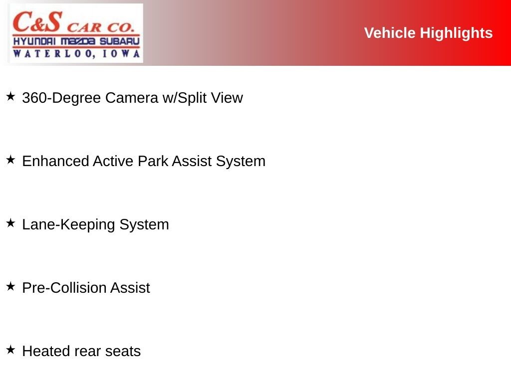 22" Polished Aluminum Wheels, 360-Degree Camera w/Split View, Adaptive Cruise Control, Automatic High Beam Headlamp, Driver Assistance Package, Enhanced Active Park Assist System, Equipment Group 302A, Heated front seats, Heated rear seats, Lane-Keeping System, LED Headlamps & Fog Lamps, Memory seat, Panoramic Vista Roof, Power driver seat, Power Liftgate, Power passenger seat, Pre-Collision Assist, Rain-Sensing Front Wipers, Split folding rear seat, Ventilated front seats, Voice-Activated Touch-Screen Navigation System.