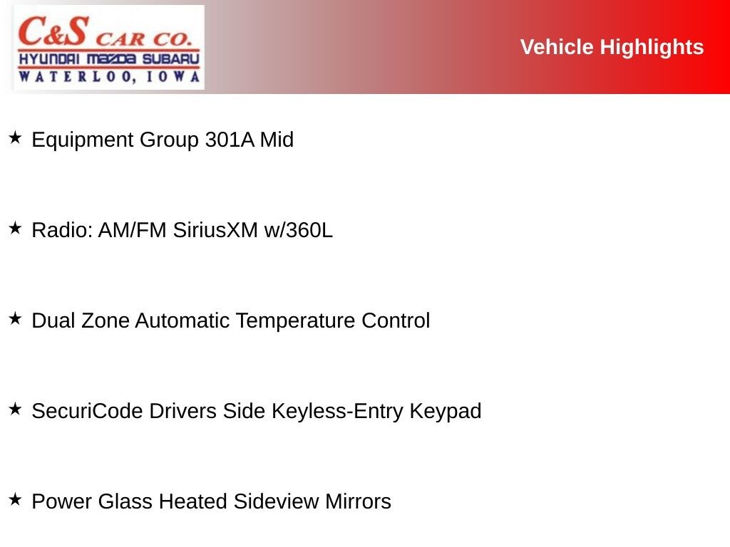8-Way Power Driver's Seat w/Power Lumbar, 8" Productivity Screen in Instrument Cluster, Auto-Dimming Rear-View Mirror, Class IV Trailer Hitch Receiver, Dual Zone Automatic Temperature Control, Equipment Group 301A Mid, Leather-Wrapped Steering Wheel, Power Glass Heated Sideview Mirrors, Radio: AM/FM SiriusXM w/360L, Rear Under-Seat Storage, SecuriCode Drivers Side Keyless-Entry Keypad, SYNC 4 w/Enhanced Voice Recognition, Wheels: 17" Silver Painted Aluminum.