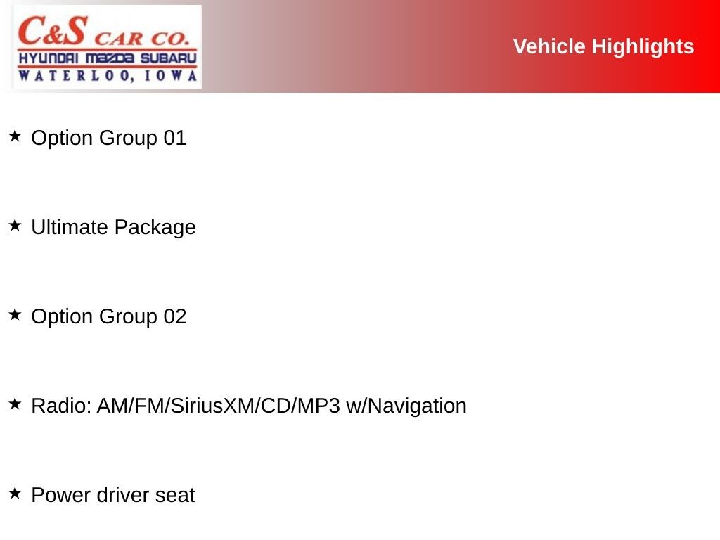 Automatic High Beam Assist, Electronic Parking Brake (EPB), Forward Collision Warning, High-Gloss Window Surrounds, Lane Departure Warning System, LED Interior Lights, Memory seat, Option Group 01, Option Group 02, Panoramic Sunroof, Power driver seat, Radio: AM/FM/SiriusXM/CD/MP3 w/Navigation, Rear Parking Sensors, Smart Cruise Control, Ultimate Package, Wheels: 17 x 7.0J Aluminum Alloy.