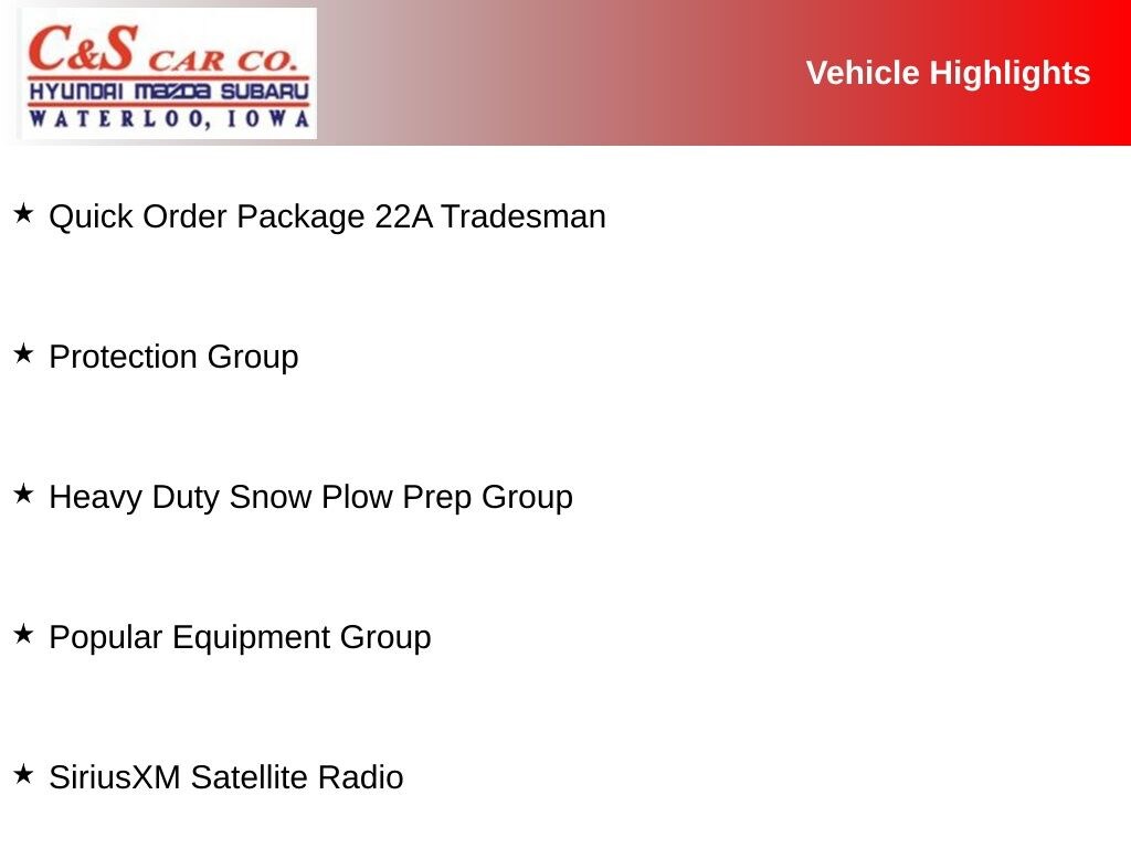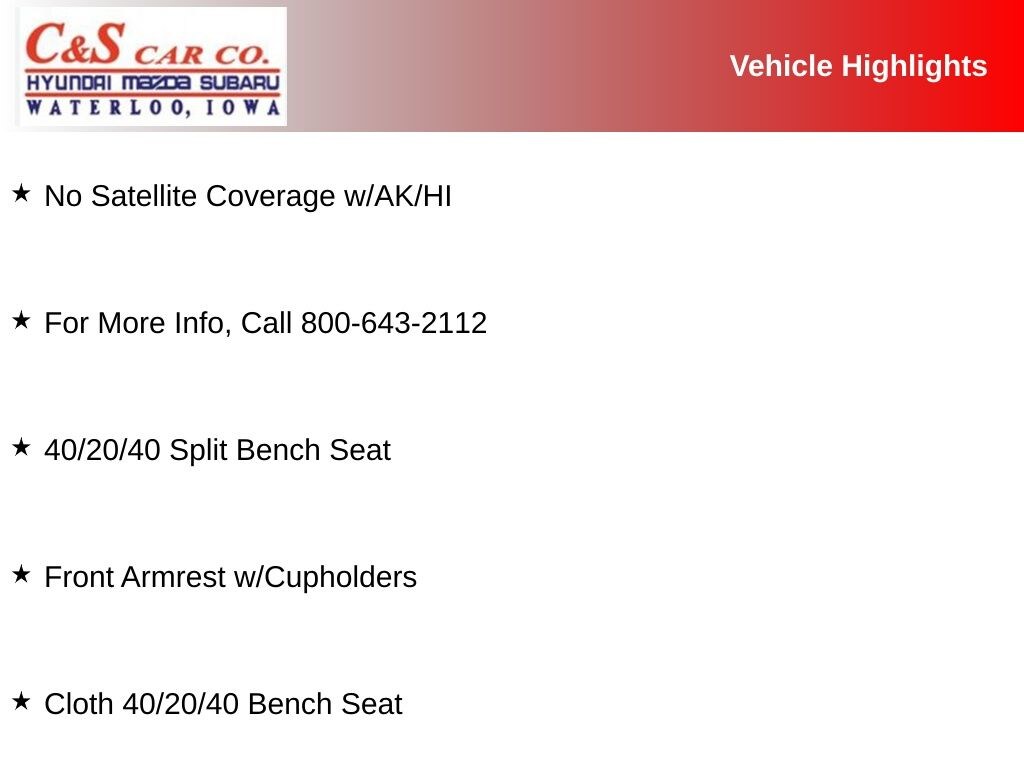 - Popular Equipment Group with SiriusXM Satellite Radio and Remote Keyless Entry