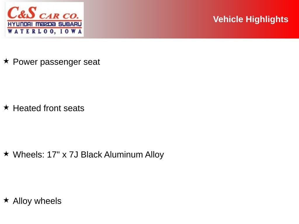 Alloy wheels, Heated Front Bucket Seats, Heated front seats, Heated rear seats, Power driver seat, Power Liftgate, Power Moonroof, Power Moonroof & Navigation & RAB, Power passenger seat, Radio: Subaru STARLINK 11.6" Multimedia Nav System, Reverse Automatic Braking (RAB) System, Split folding rear seat, StarTex-Trimmed Upholstery, Wheels: 17" x 7J Black Aluminum Alloy.