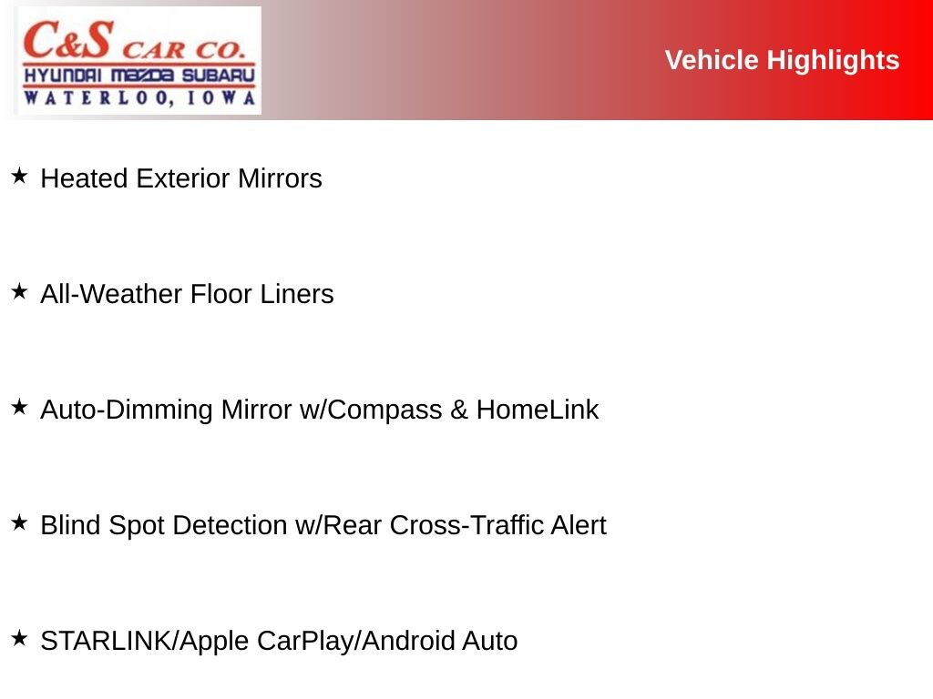 ⢠Blind Spot Detection with Rear Cross-Traffic Alert